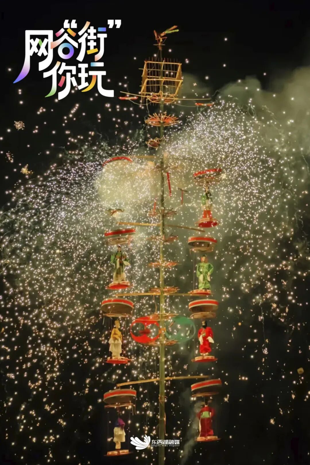 同样令人期待的还有药发木偶。这项将烟花与木偶戏结合的传统技艺,曾在《藏海传》等影视作品中惊艳观众。此次,表演者将《西游记》《陈十四》《封神榜》等传统剧目的神话人物等制成木偶造型,混于烟花之中燃放。在烟花的带动下,焰光中木偶凌空飞舞、犹如火树银花上轻盈旋转,尤为夺目。