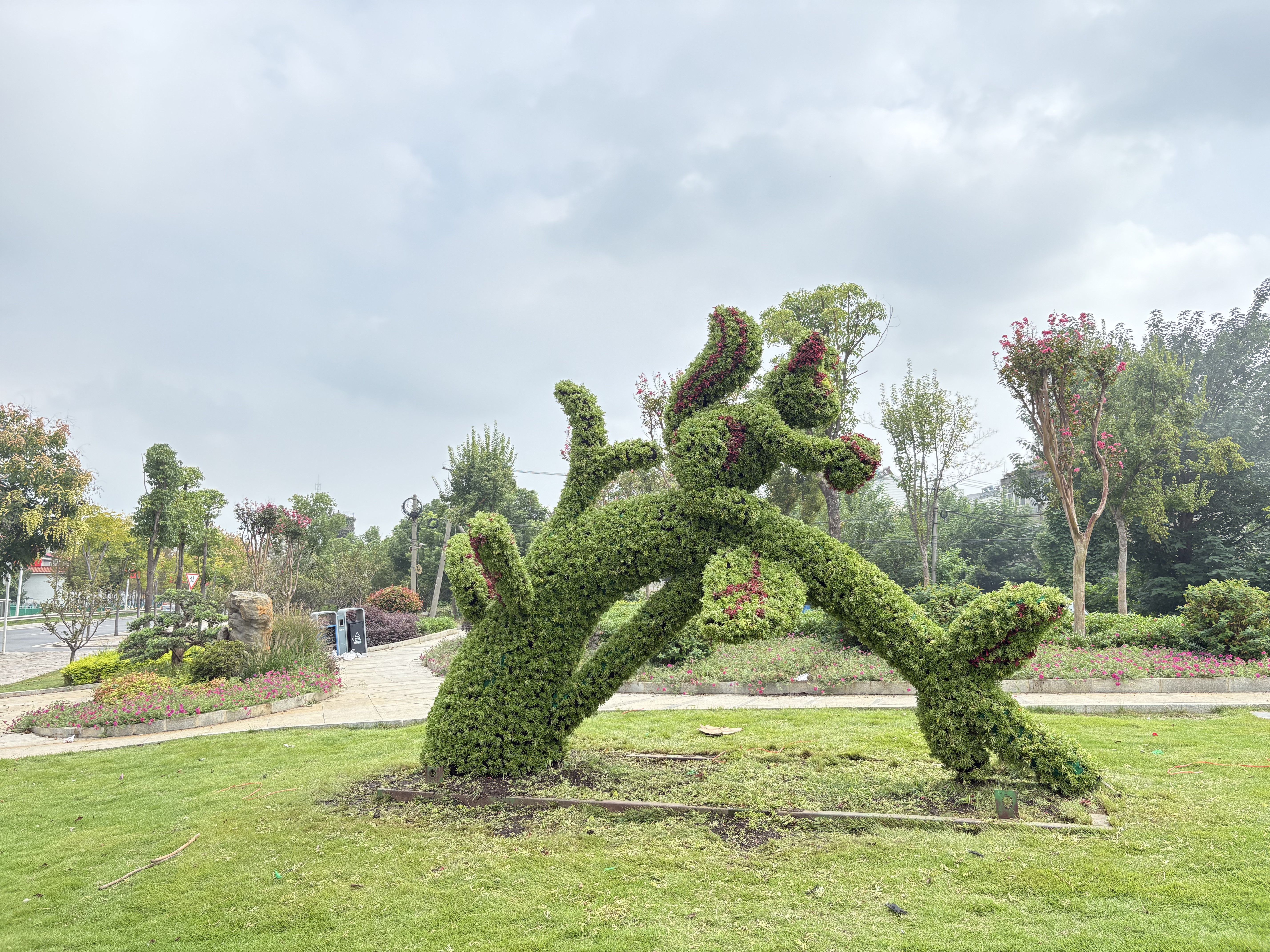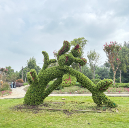 岭通大道迎双节展新颜。近日,走马岭街岭通大道节点口袋公园内的标志性松鼠绿雕完成“换装”,以鲜活姿态迎接双节,成为居民休闲打卡的新亮点。这只高约2米的松鼠绿雕以“啃食松果”为造型,工作人员选用红绿草、佛甲草重塑肌理,搭配红景天、网纹草点缀,让松鼠形象更显灵动。