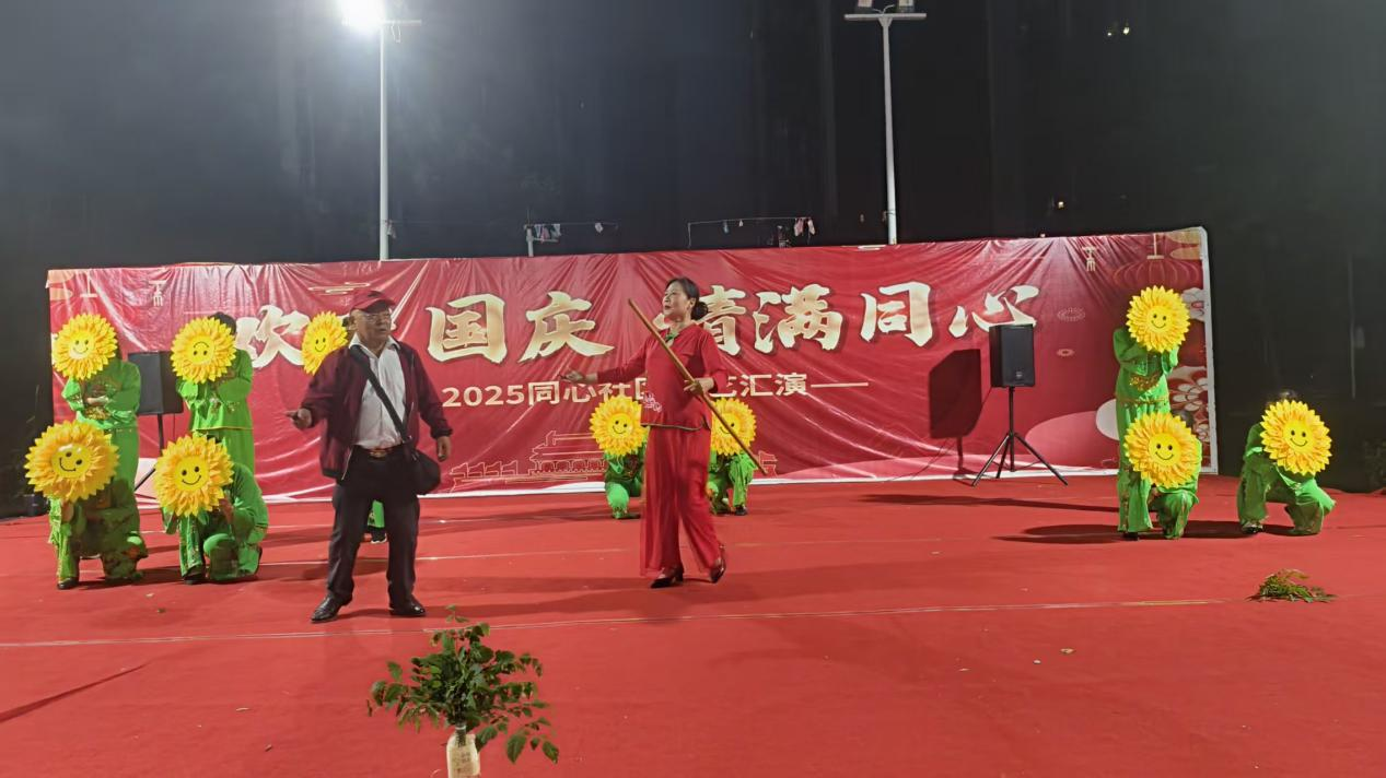 9月28日晚,苗湖社区文化广场举办“中秋团圆一家亲 国庆同庆万家欢”主题文艺汇演。开场舞以红色绸缎与金色灯笼为道具,瞬间点燃现场气氛。随后,居民们合唱爱国歌曲,全场挥舞国旗,将氛围推向高潮。活动中还穿插了中秋、国庆知识趣味问答和“我与国旗同框”拍照环节,让居民在欢乐互动中感受传统文化与家国情怀。居民们纷纷表示,这样的活动让节日更有意义,也让邻里关系更融洽。