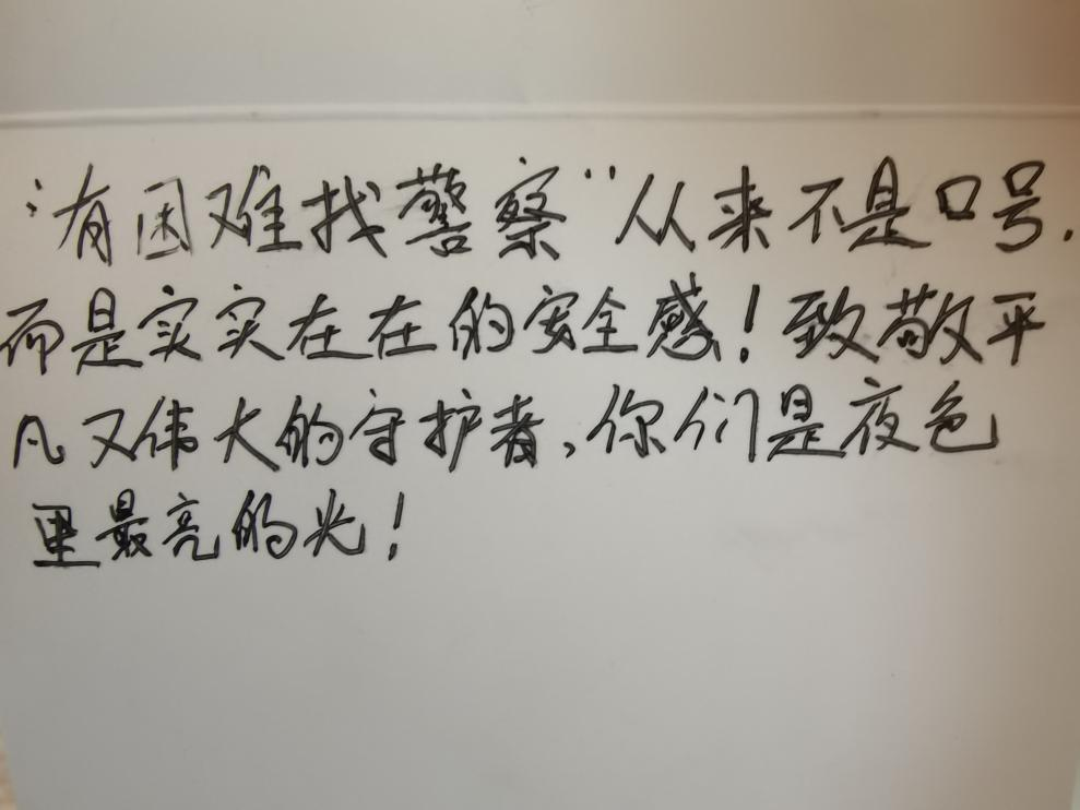 “‘有困难找警察’从来不是一句口号,而是实实在在的安全感!致敬平凡又伟大的守护者,你们是夜色里最亮的光。”失而复得的杨女士,在所内留言板上亲手写下了这段话语,连连为东西湖警方点赞。
