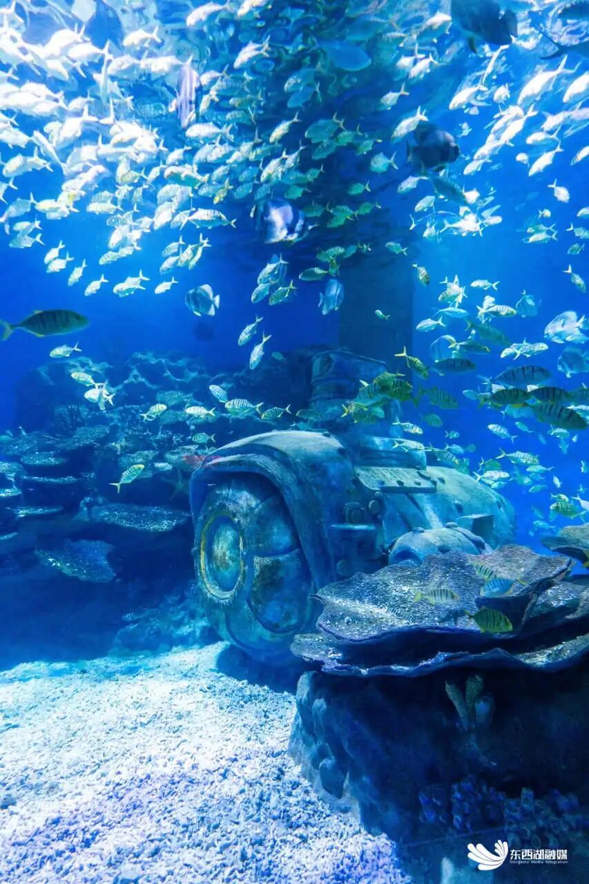 走进园区,“樱海绮遇季”扑面而来:海底隧道的穹顶垂落的仿真樱花随水流晃动,魔鬼鱼从头顶游过,仿佛闯入樱花雨下的海底世界。