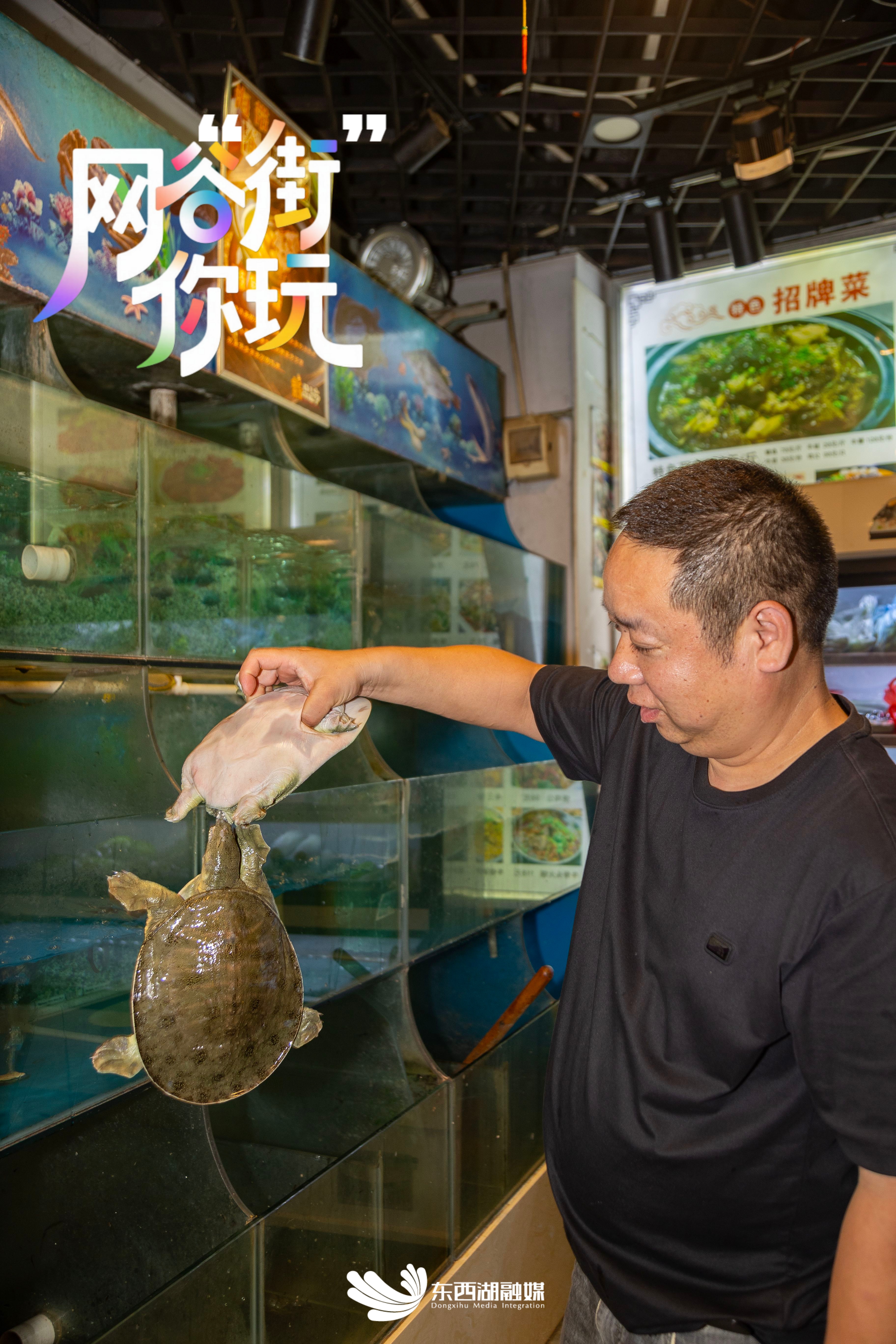 上午九点半,在金大圣甲(东西湖店)厨房,店主李厚飞和往常一样,检查着当天送来的甲鱼。他要的是养殖三年左右的湖塘甲鱼,背壳油润,裙边宽厚。“不是温室里速成的,”他说,“口感,骗不了人。”