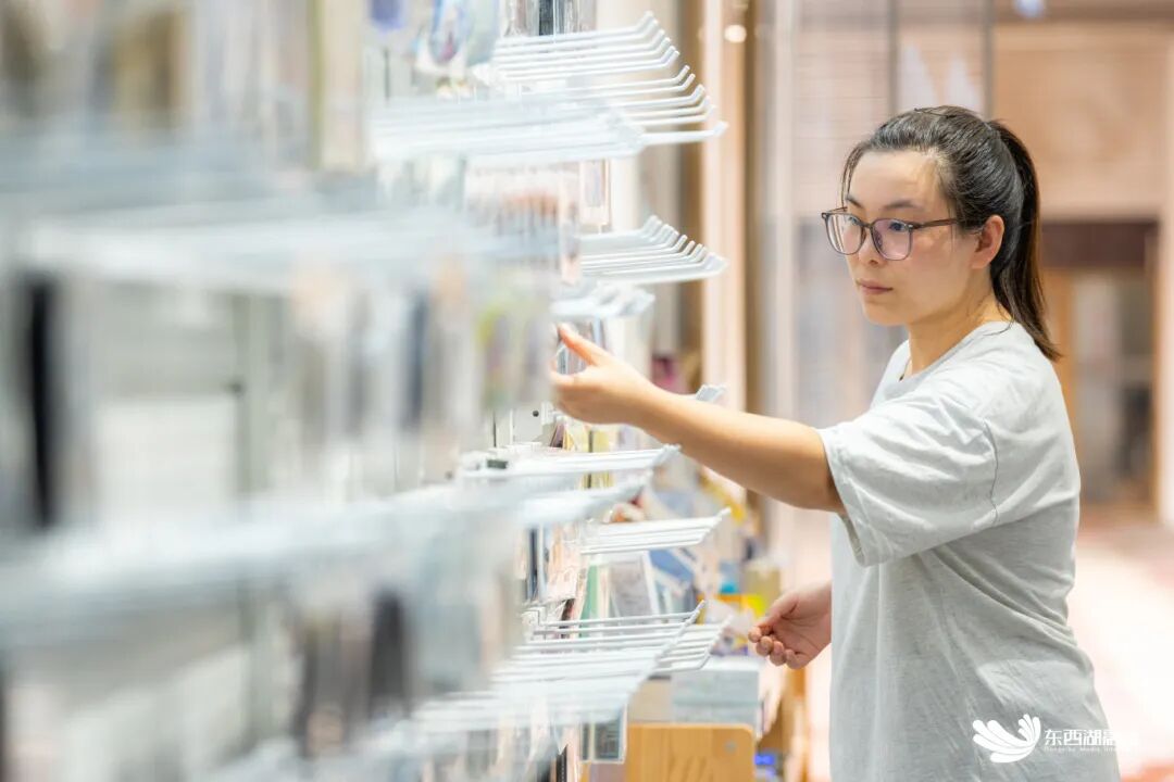 开店初期,她亲手贴海报、调音响、选品摆货,货架上每一枚徽章、每一张卡片都是她反复筛选的心头好,小店很快成了学生们的“秘密基地”。