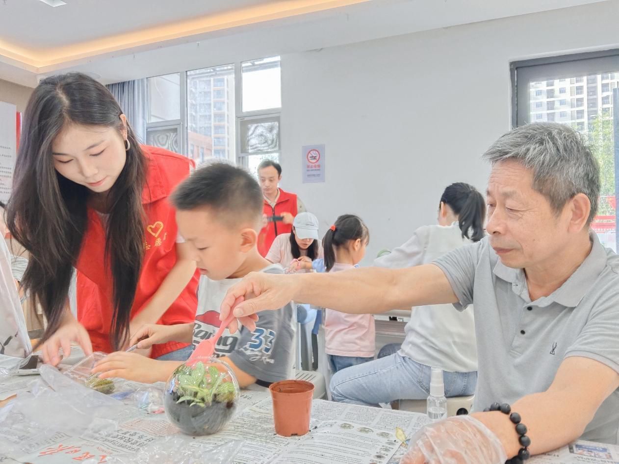 在响应武汉市儿童友好城市建设背景下,将军路街刘家墩社区以优化儿童成长空间为目的,发起了墩墩“童”乐汇——儿童友好空间改造项目,10月8日,举办了该项目最后一次活动——“巧手造微景 暖新聚温情”新就业群体亲子创意自然手工活动,通过丰富的自然体验,吸引了诸多新就业群体家庭报名,制作出一个个精致且创意十足的桌面微景观,为社区儿童友好空间增添绿意。