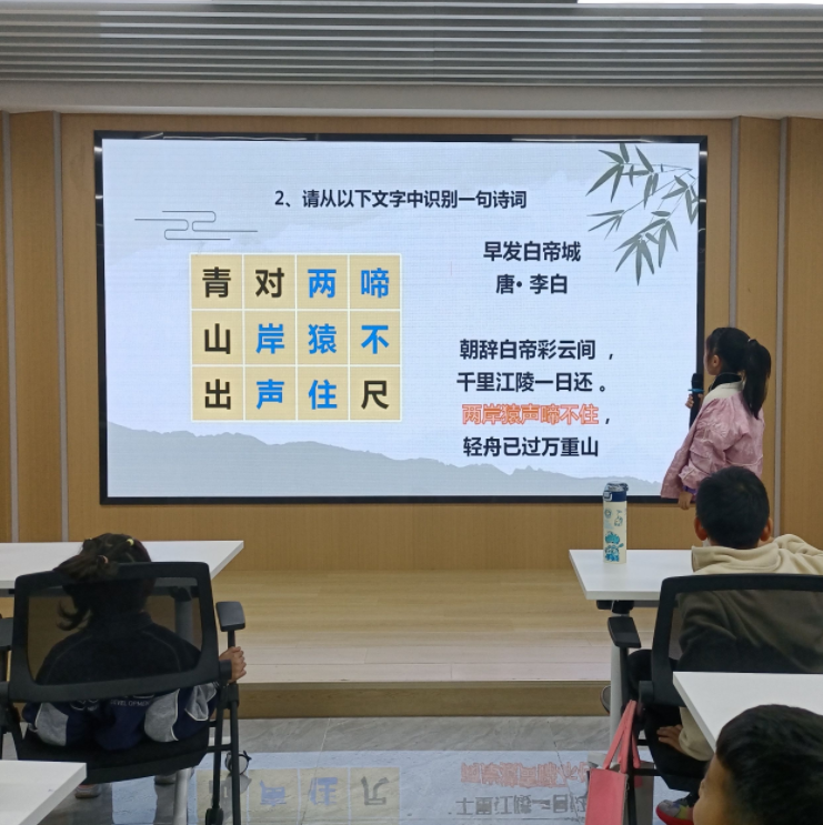 活动将非遗技艺与诗词教育相结合,让青少年在动手实践中增强文化认同。“活字印刷术讲解”通过PPT与动画,系统介绍该项非物质文化遗产的发展历程、技术原理及文化价值,加深青少年对传统技艺保护与传承意义的理解。“活字印诗体验”环节中,孩子们通过诗词九宫格游戏温习经典,并亲手操作活字印刷工具,完成拣字、排版、上墨、拓印全过程,在墨香中感受古人智慧与工匠精神。此外,每位参与者在绿书签上写下“护苗宣言”或阅读感悟,使书签成为兼具非遗实践与文明倡议的双重载体。