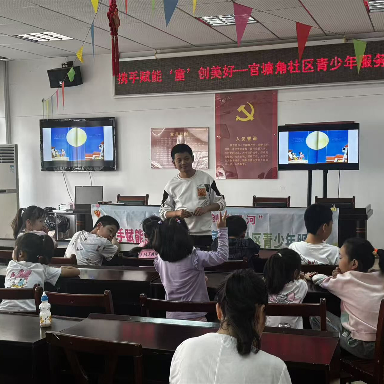 9月27日上午9:30,官塘角社区三楼热闹非凡,径河街道第二届 “汇爱滨水,创益径河” 公益创投项目下的 “携手赋能,‘童’创美好 —— 官塘角社区青少年服务” 活动如期开启。本次活动以 “明月有约,阅见书香” 为主题,通过互动游戏、童书共读、神话分享和亲子手工等形式,为 18组5-10 岁亲子家庭带来了一场兼具趣味与文化韵味的中秋体验。