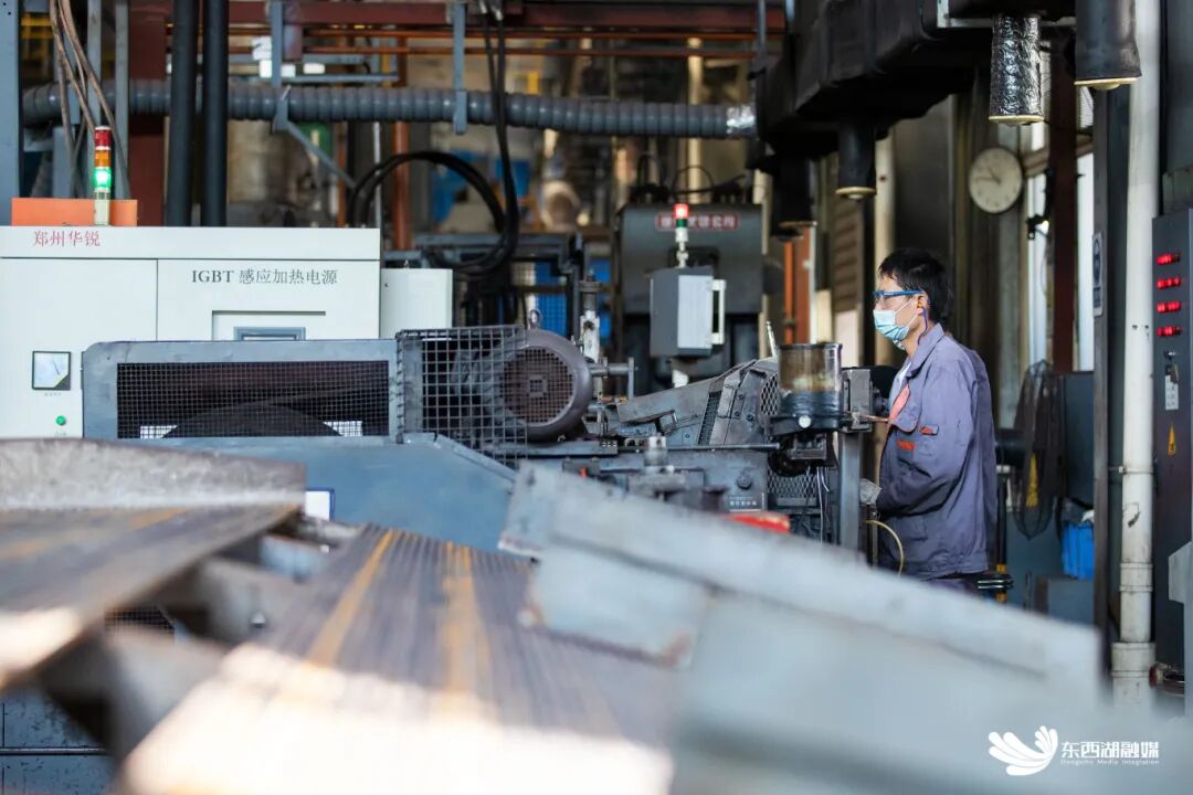 经历加热、折弯后,通红炽热的π形坯件转入淬火炉,历经回火、冷却、喷涂,一枚FC成品就此下线。