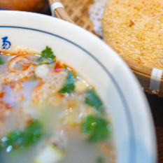 一盅蒸得晶莹剔透的米饭,成了连接汤羹与小炒的绝佳桥梁。舀汤泡饭,佐以小菜,平凡一餐顿时活色生香。