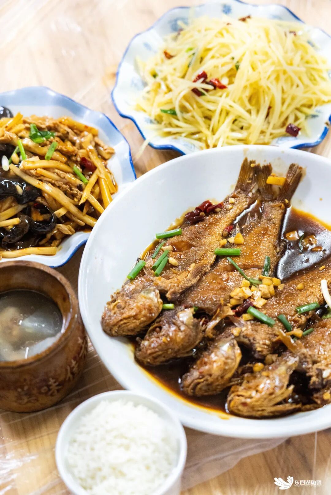 汤品润泽之余,小炒更添风味。"每次都要点大份小黄鱼,我一个人就能吃两条。"老顾客朱磊指着刚上桌的菜肴介绍。鱼肉洁白,外衣焦脆,裹着特调酱汁,回味中带着恰到好处的微辣。看似平凡的酸辣土豆丝同样见真章——根根挺立,脆嫩爽口,酸辣均衡,堪称"下饭神器"。