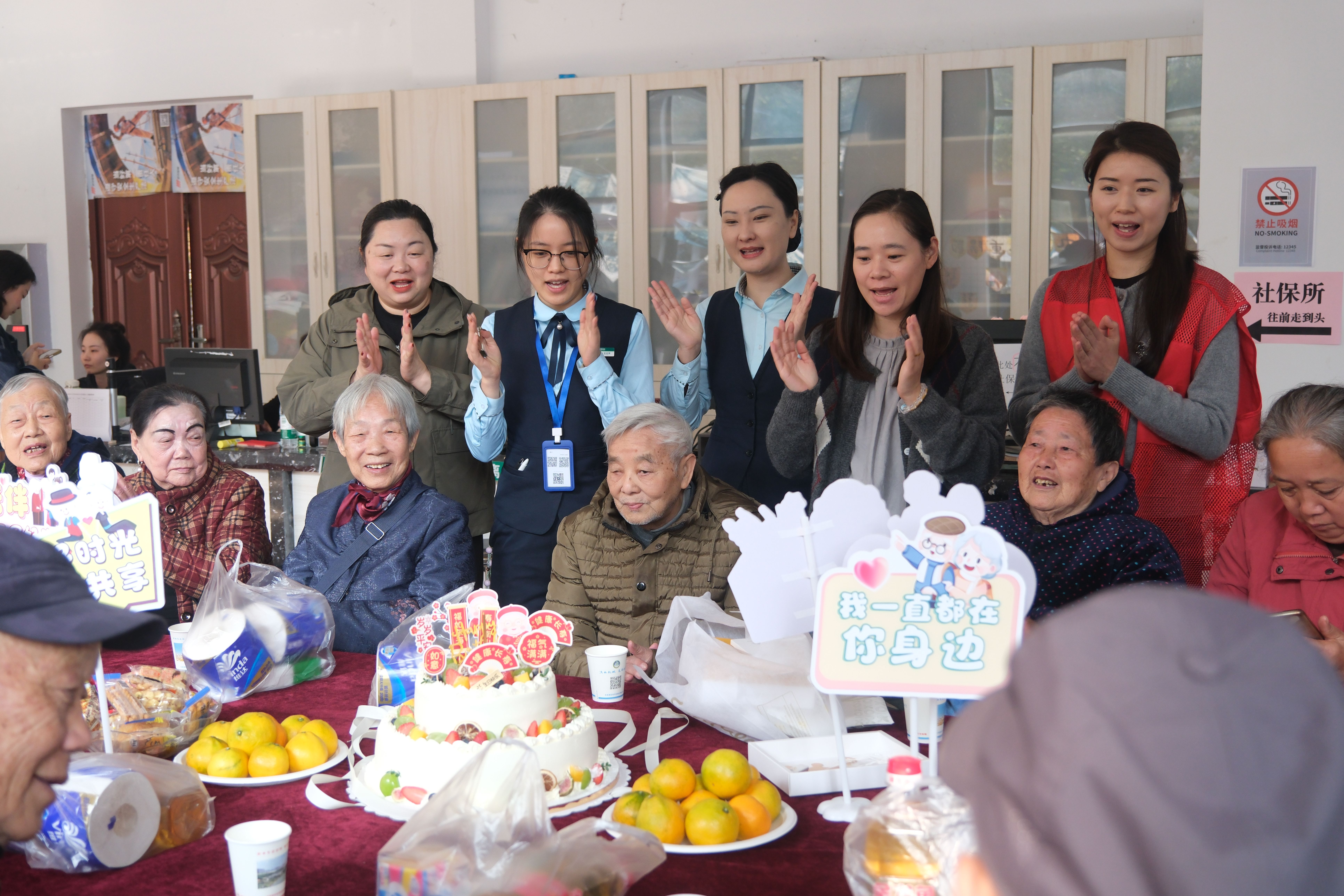 社区工作人员为老人们庆生