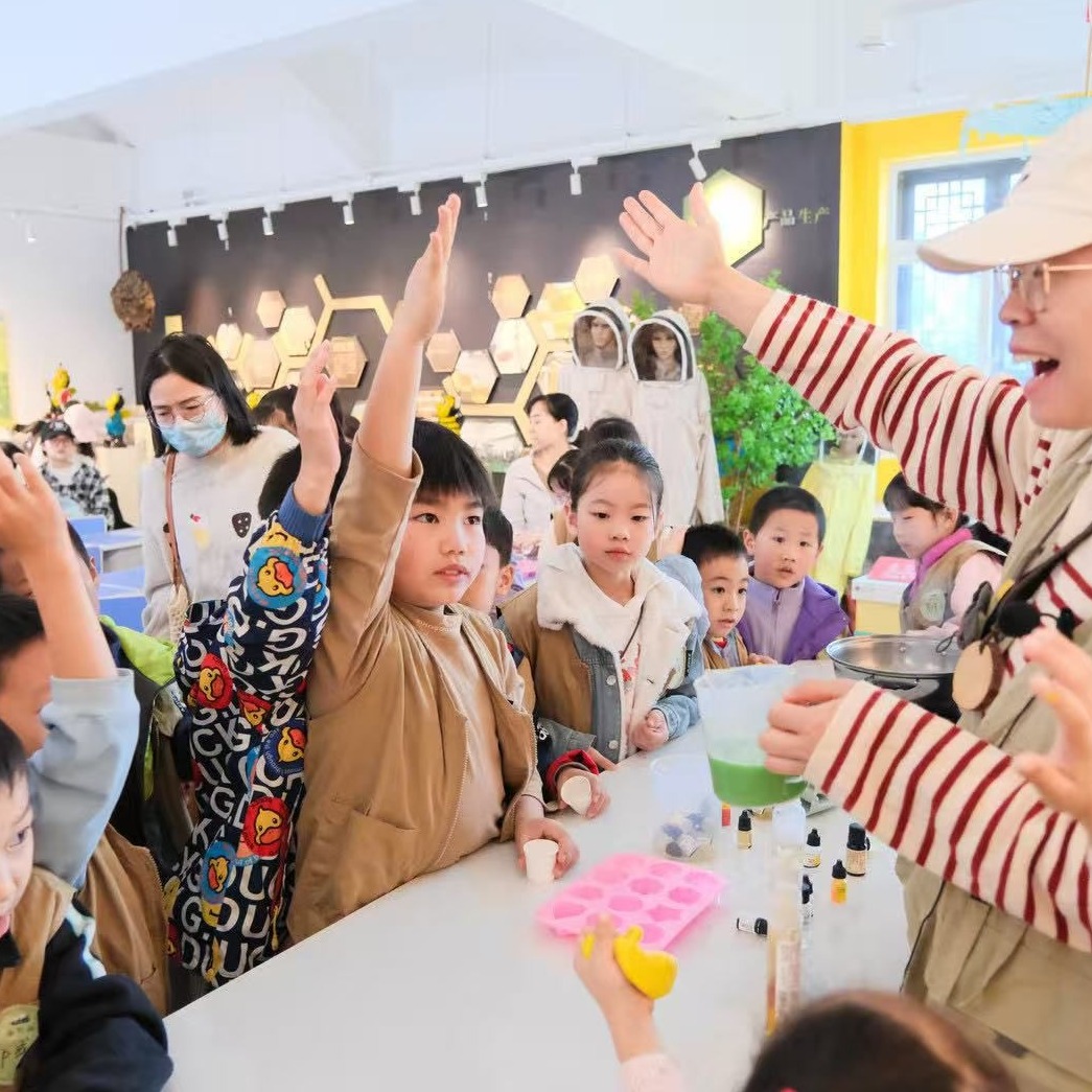 随后的蜂蜜品鉴与创意手工环节,则将知识化为可感、可触的体验。亲子家庭协同创作,用黏土塑成蜜蜂成长的立体模型,亲手制作蜂蜜香皂。现场欢声笑语不断,孩子们在动手实践中感受自然造物的神奇,家长们则在温馨的陪伴中,见证着孩子的成长与发现。