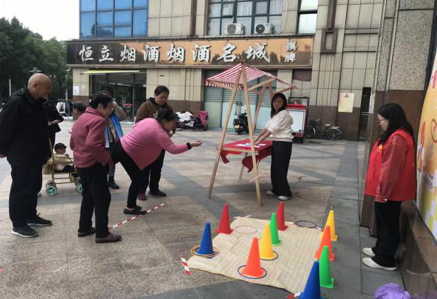 最热闹的当属 “重阳习俗体验区”。“投壶纳福”环节里,居民们站在指定线外,手持箭矢瞄准壶口,有的老人瞄准投掷一气呵成,引得周围阵阵喝彩;“快乐丢丢乐”中,孩子们踮着脚将沙包投向靶心,击中8-10 环时欢呼雀跃;“蹴鞠”游戏则让不少中老年人重拾活力,两次踢中目标的王叔叔笑着说:“好久没运动了,这游戏既好玩又锻炼腿脚!”据悉,居民每在游戏中达标一次,就能获得一枚兑换币,可兑换小礼品,趣味规则让现场互动氛围持续升温。