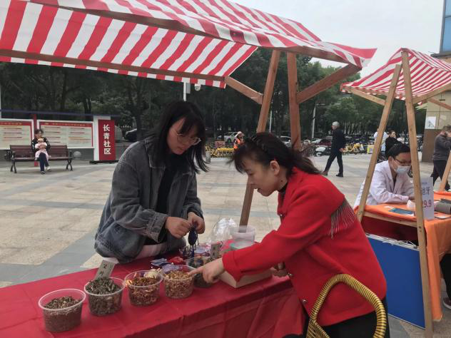 在“重阳手工体验区”,五颜六色的香包布料、干燥的茱萸与各类香料整齐摆放,社区志愿者耐心示范茱萸香包的缝制方法。“小时候重阳节就跟着妈妈做香包,今天在社区又找回了老味道!”72 岁的张阿姨手指灵活穿梭于针线间,身旁的年轻居民小王则主动帮忙穿线,老少协作间,一个个绣着吉祥纹样的茱萸香包逐渐成型。不少居民将做好的香包挂在衣襟上,淡淡的草药香萦绕广场,成为重阳节独特的 “仪式感”。