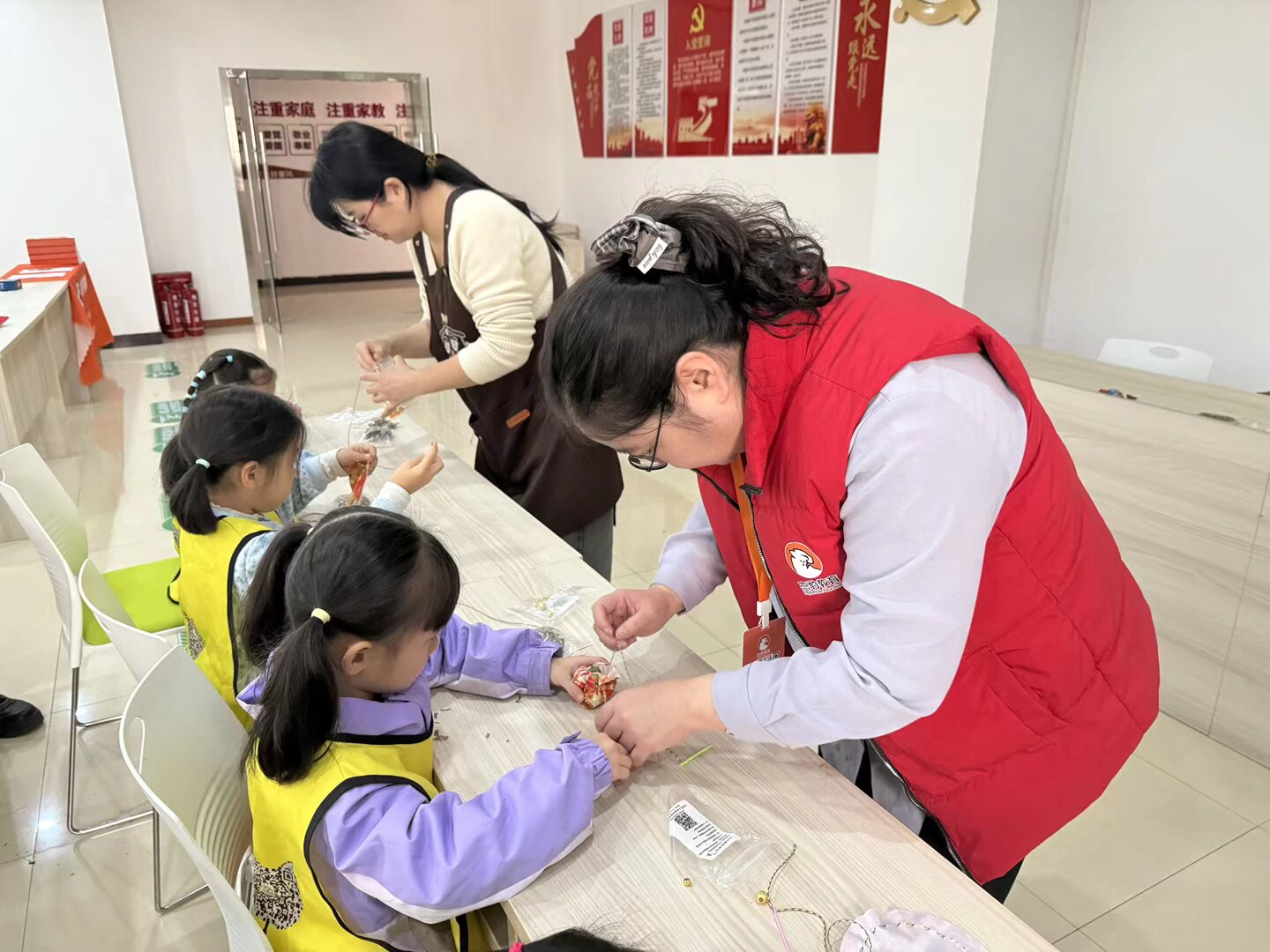 随后,活动进入“巧手传情”环节。在志愿者的指导下,小朋友与家长共同动手制作重阳节香囊。从选材、填充到缝合,每一步都凝聚着亲子间的默契与温情。孩子们用稚嫩的小手将艾草叶装入香囊,再系上五彩丝线,一个个承载着祝福与爱意的香囊逐渐成型。家长们纷纷表示,这样的活动不仅让孩子了解了传统文化,更增进了亲子间的情感交流。