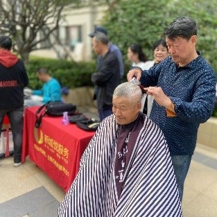 公益理发区为老人免费修剪头发