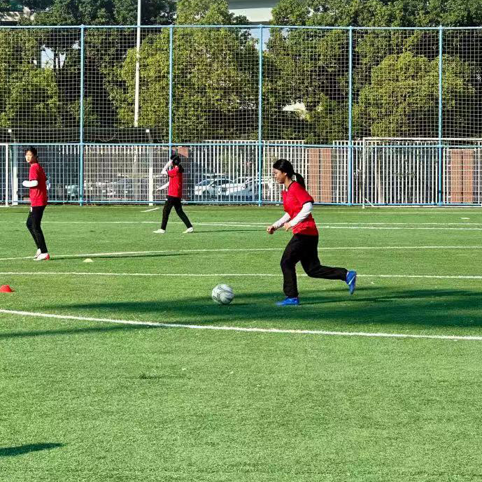 胜利源于日常的积淀。每天下午3点,女足队员雷打不动进行两小时训练。“训练虽苦,但每天都有进步,”队长杨雅岚说,“每当突破一个技术难点,所有汗水都变得值得。”在教练的指导下,队员们不断调整动作、磨炼技巧,在一次次挑战中实现自我超越。