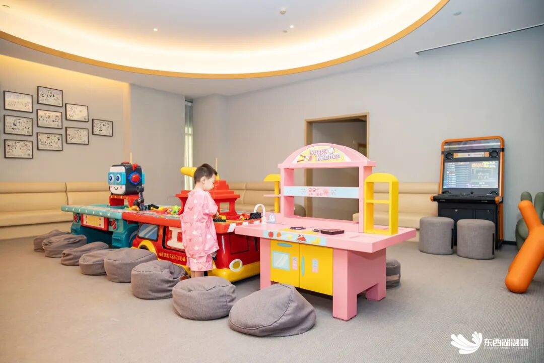 想找个更私密的空间?归属感十足的格子洞,成了大人小憩、孩子游戏的“秘密基地”。三层则设有55间客房,六种房型,为住客留出更多静谧与窗外视野。