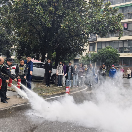 上午9时,演练正式开始,消防救援人员现场开展“消防技能小课堂”,讲解了灭火器的使用方法,演示了“一提、二拔、三握、四压”的操作口诀,提起灭火器,拔掉保险销,握住喷管对准火焰根部,用力压下把手。”他边说边操作,瞬间扑灭了模拟火盆里的火焰,引得居民阵阵喝彩。并邀请了现场的居民代表、民兵实操体验扑灭模拟火源。此外,消防员还走进居民楼,重点讲解了电动车充电安全、家庭火灾隐患排查等知识,提醒大家“离家前关火、关电、关气”,遇到火灾保持冷静,优先保护自身安全。