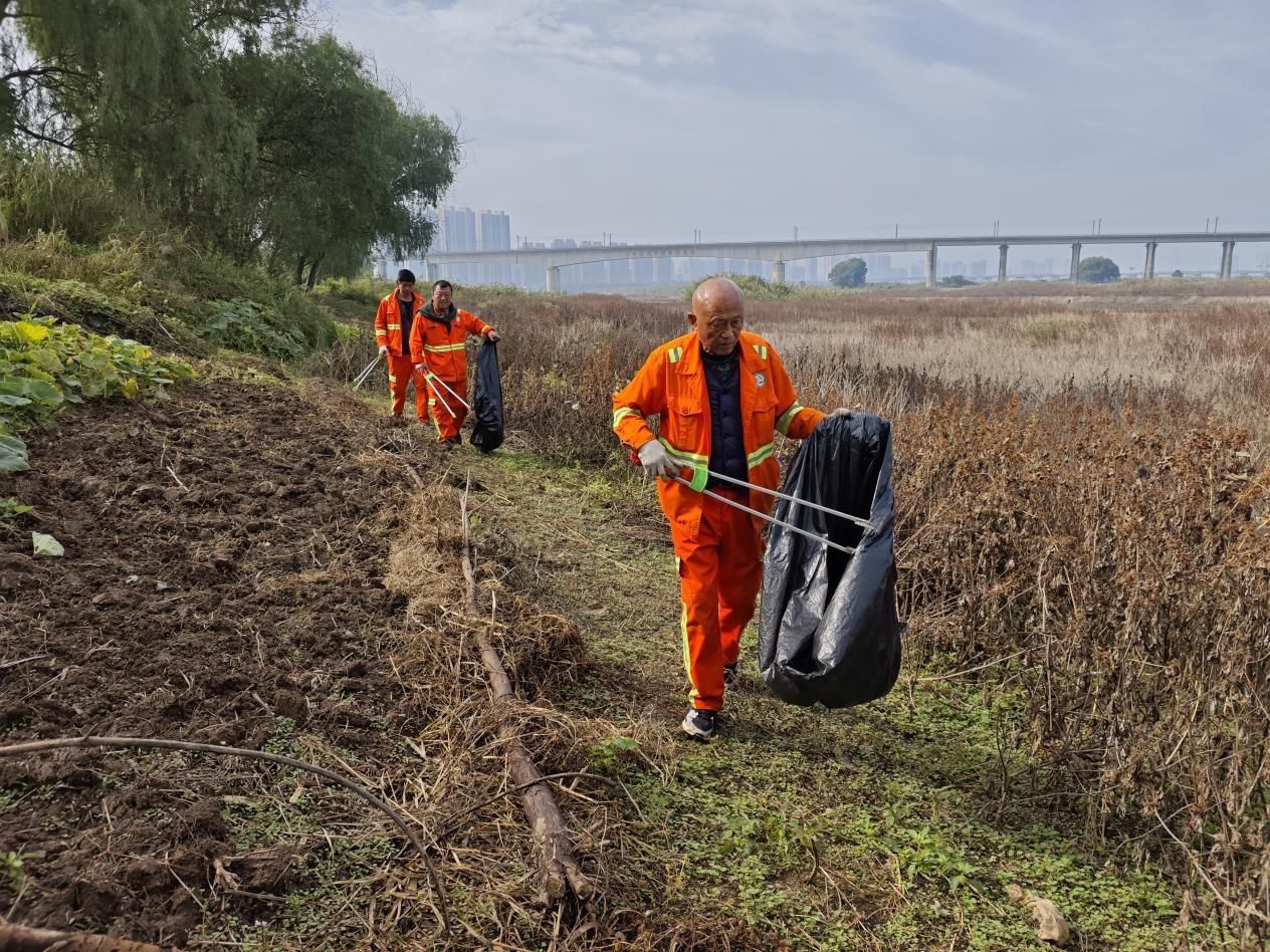 “必须把隐蔽角落的垃圾都清干净,还要考虑后续维护,这样整治效果才能长久。”现场作业的环卫组长说道。经过数小时奋战,共清理各类垃圾10余袋,清运大件杂物2车,原本散落垃圾的岸线变得整洁有序,杂草丛生的区域恢复清爽面貌,府河沿岸生态环境显著提升。