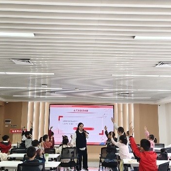 “水始冰,地始冻,雉入大水为蜃……”6分钟动画短片带领孩子们云游南北,了解了立冬气候特征与“北饺子、南汤圆、冬季滋补养生”等习俗。随后,两位“领读小助手”登台,带领全场齐诵李白与王稚登的《立冬》诗篇,在诵读中把古诗“读成有节奏的雪花”。课堂最后,10道趣味抢答题点燃全场,“立冬是第几个节气?”“立冬我们要注意什么?”孩子们纷纷举手抢答,秒变“立冬小学霸”,在互动问答中巩固了节气知识。