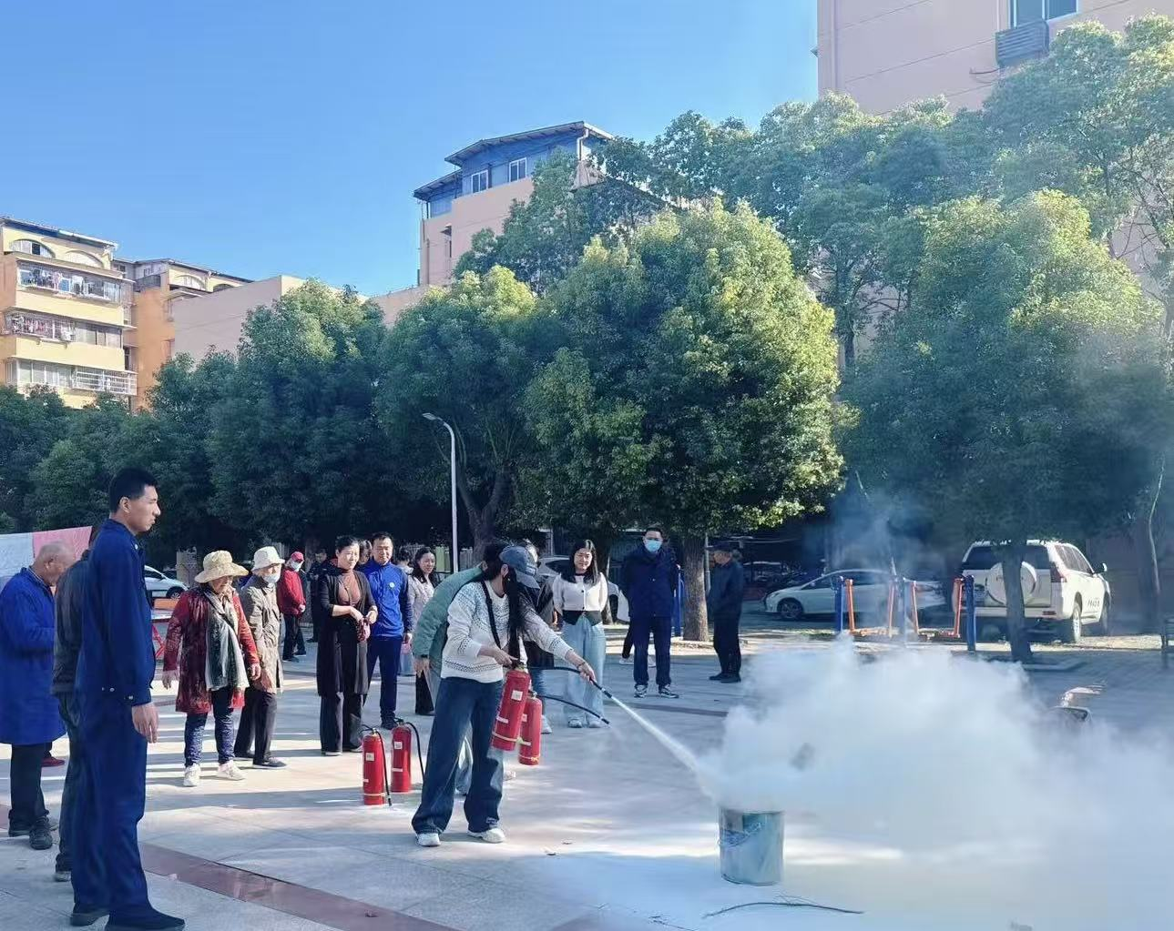 上午9时,社区广场上人头攒动,消防演练正式开始。消防指导员首先通过案例讲解、器材展示,向居民普及了家庭火灾预防、初期火灾扑救及火场逃生知识,重点演示了干粉灭火器“提、拔、握、压”的操作要领。