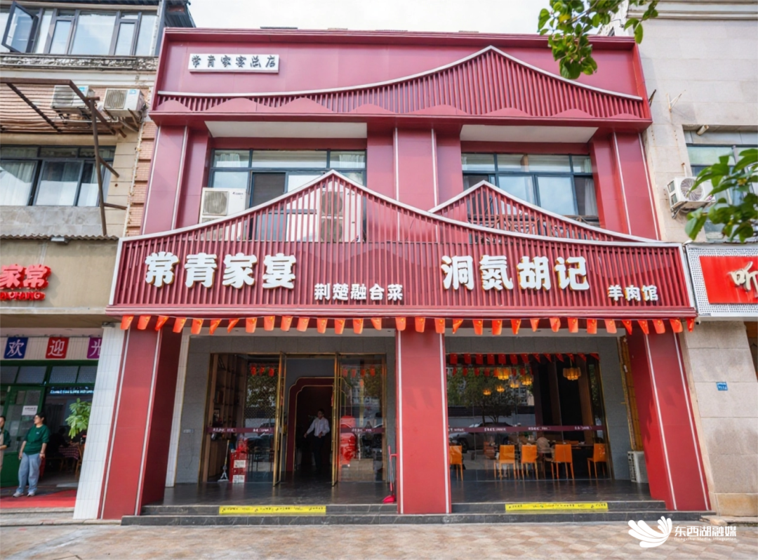 常青中路上,一家名字格外长的小馆很是吸睛——“洞氮胡记羊肉馆·常青家宴荆楚融合菜”。街坊们为图省事,简称为“常青家宴”。