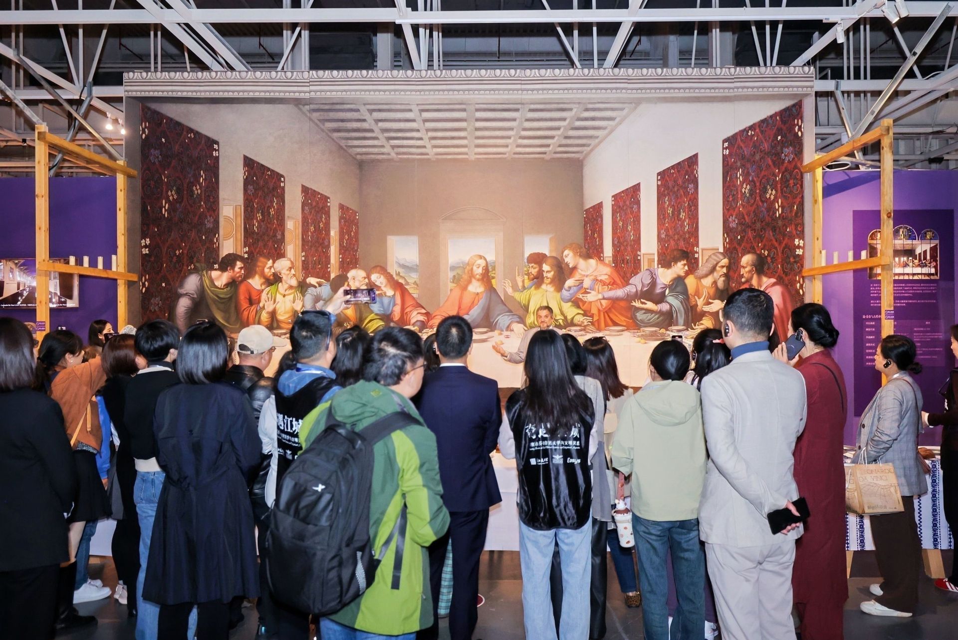为方便游客拍照打卡,展览现场还设置有达·芬奇名画《最后的晚餐》《蒙娜丽莎》的场景再现。同时,借助数字还原修复技术,观众还可近距离观赏《最后的晚餐》和《蒙娜丽莎》等作品原貌色彩与细节。
