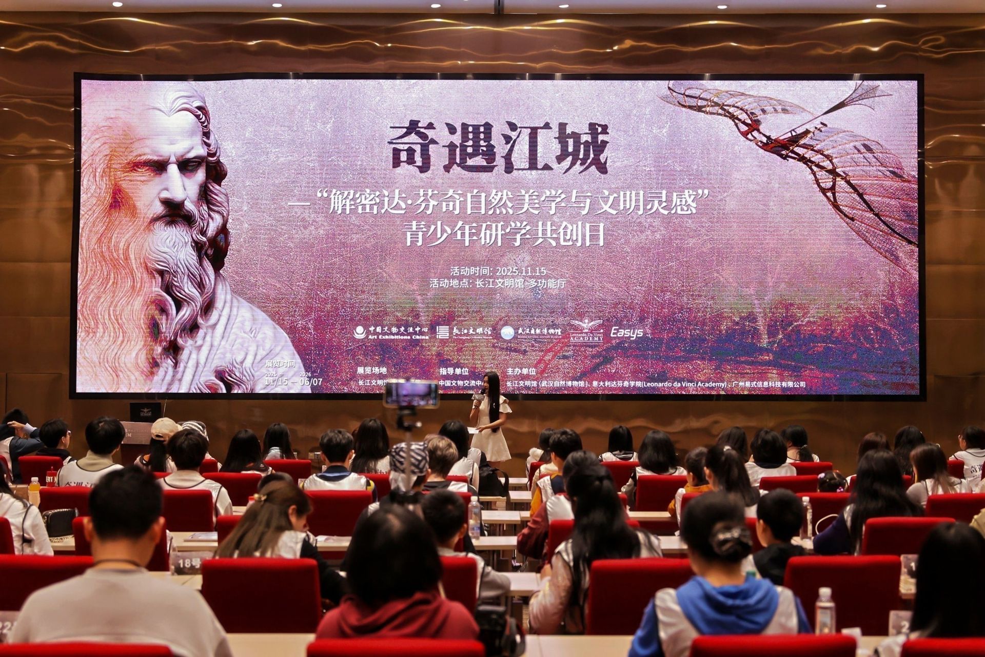 《奇遇江城——解密达·芬奇的自然美学与文明灵感》展览由长江文明馆(武汉自然博物馆)、意大利达芬奇学院(Leonardo da Vinci Academy)、广州易式信息科技有限公司共同主办。展览地点在长江文明馆临展厅,展览时间持续到2026年6月。感兴趣的观众可关注“武汉自然博物馆”微信了解相关购票观展信息。