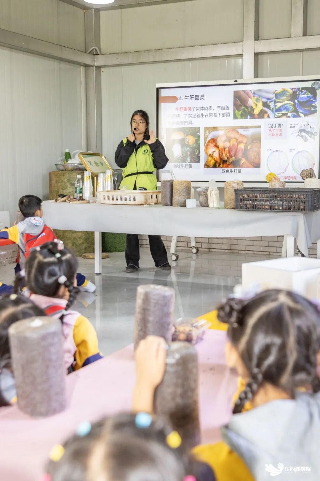 孩子们亲手采摘蘑菇、品尝菌菇汤、制作菌包,互动问答揭开微生物生长的奥秘。