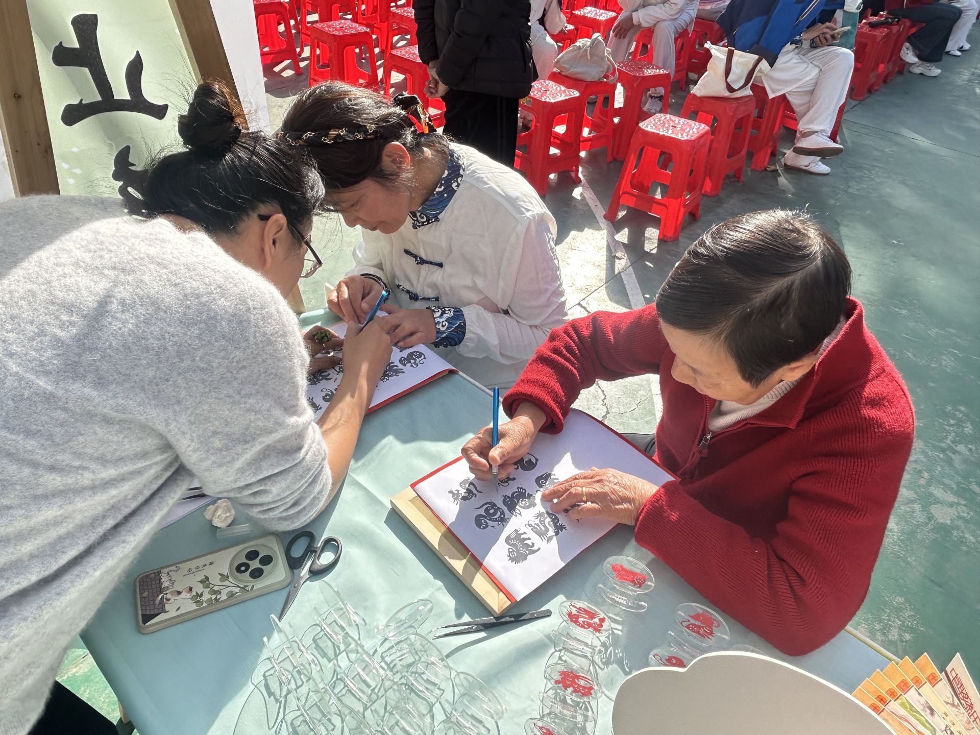 活动现场亮点纷呈,互动体验区趣味十足。书法老师挥毫泼墨,笔走龙蛇间尽显汉字魅力,让居民近距离感受中华优秀传统文化的博大精深。艺术剪纸与非遗陶艺体验区前,大家专注创作,在实践中体悟传统美学的独特韵味。最具人气的“以书换蔬”环节,一本本旧书换得新鲜蔬菜,既让闲置知识流转起来,又传递了绿色生活理念。“好书共享”阅读角将热门书目与推荐典籍整齐陈列,居民们或静心品读,或轻声交流,沉浸在文字构筑的世界里;文创市集上,志愿者与居民自制的手工文创作品琳琅满目,创意与温情在互动中传递。