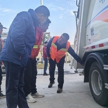 这次培训没搞“纸上谈兵”,清运师傅们先蹲在新车旁听技术人员讲“脾气”——“这新车比老车重两吨,满载转弯可得慢到15码以内,大家稳着来才安全”;接着师傅们怀揣着既激动又冷静的心情上手练“真招”——从出车前绕车查轮胎、试刹车,到装垃圾时锁箱门、看液压表,师傅们轮着操作,技术人员在旁边盯着纠正:“这起步油门轻点儿,大家清运急但安全不能急!”最后还加了“应急小测验”——模拟“液压突然漏了”“倒车时有人靠近”,师傅们边喊“关发动机!设警示墩!”边实操,把“遇事不慌”练在了手头上。