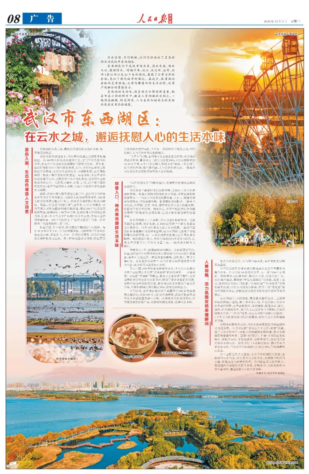 从生态画卷到舌尖盛宴,从亲子欢歌到民宿闲情,东西湖的生活气息,是自然与人文的共生,是传统与现代的交融,更是生活与诗意的共鸣。东西湖区正以独特魅力,邀请海内外游客前来打卡赏景、品味生活,在湖光林影与市井温情中,邂逅抚慰人心的生活本味。