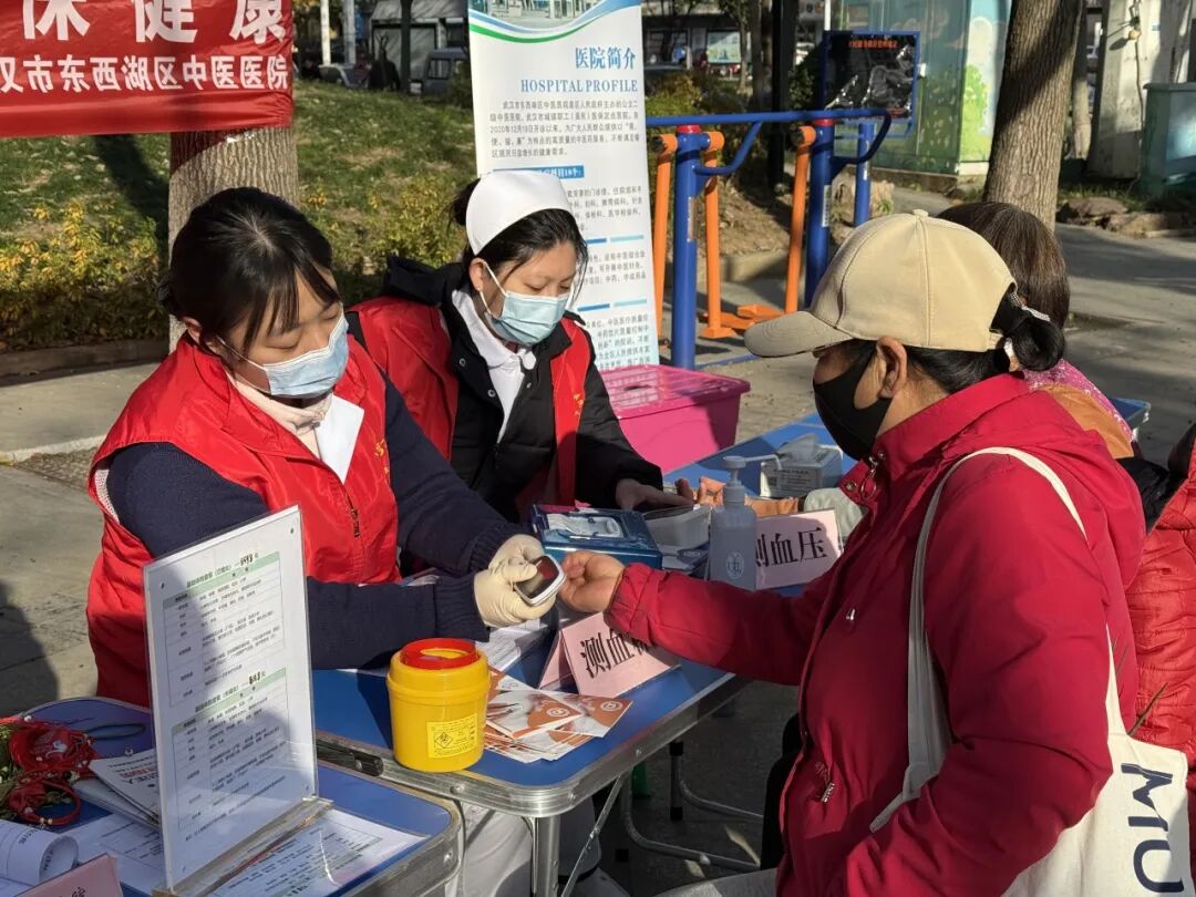 医护人员同步为居民提供了免费的血压、血糖测量服务,帮助大家及时了解自身基础健康状况。医院还准备了中药特色香囊,免费赠予社区居民,传递中医药的独特魅力与温暖关怀。
