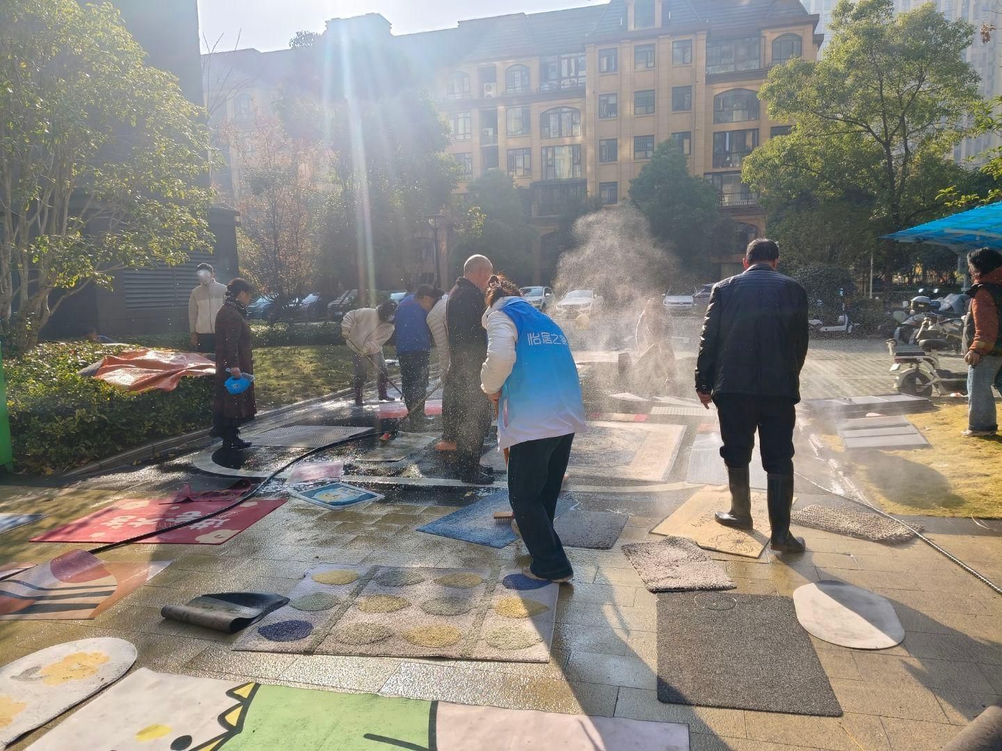 便民服务区同样人气爆棚。物业工作人员认真清洗、晾晒地毯,磨刀师傅的摊位前更是排起长队。活动现场为居民准备了热姜茶,暖意直达心底。