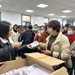 社区工作人员向居民发放礼品