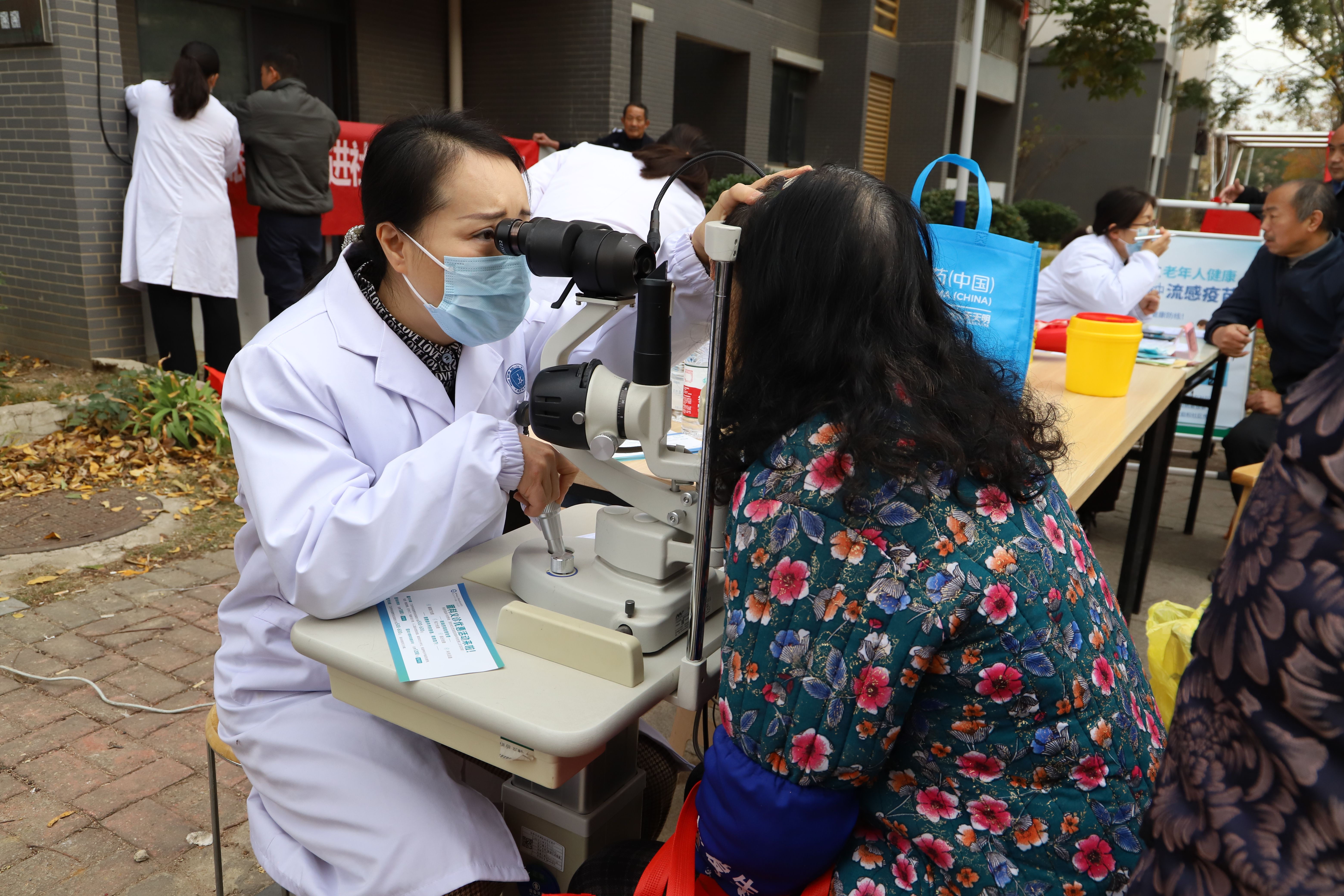 眼科团队现场为居民进行检查