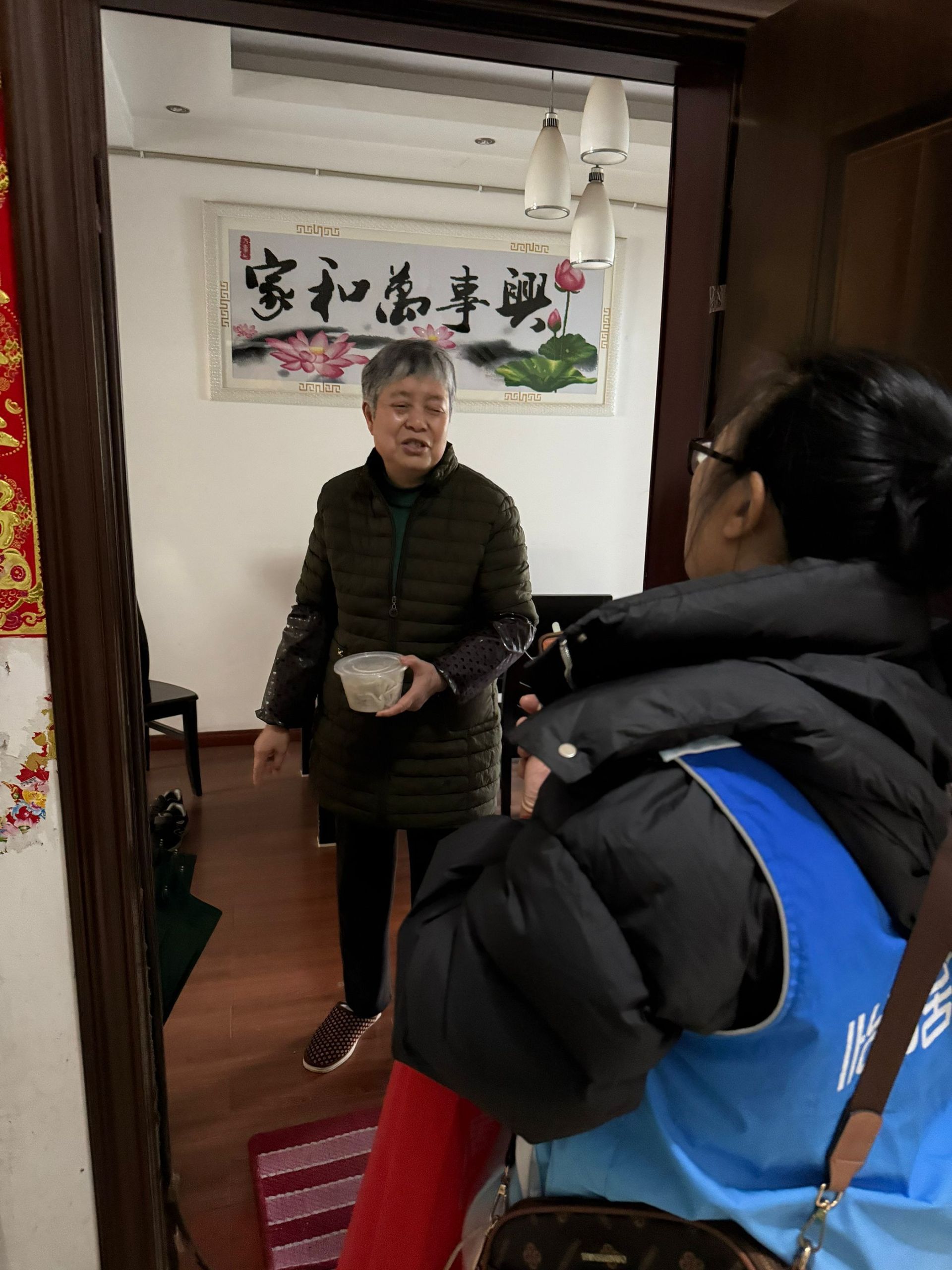 紧接着,品尝饺子环节温馨开启。志愿者们将热气腾腾的饺子端上桌,大家围坐在一起,边吃边话家常,分享生活趣事与社区新鲜变化。欢声笑语伴着饺子的香气弥漫在活动现场,浓浓的邻里温情在互动交流中持续升温。“和这么多邻居一起过节,吃着热乎的饺子,心里比啥都暖!”参与活动的李阿姨感动地说道。活动尾声,社区工作人员与志愿者化身“爱心使者”,将打包好的饺子与节日祝福一同送到辖区行动不便的独居老人、困难党员及特殊家庭家中,亲切询问他们的身体状况和生活需求,叮嘱他们注意冬季防寒保暖,让他们在寒冬中也能感受到社区的关怀与邻里的温情。