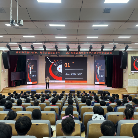 在初中端,吴家山中学骨干教师吴倩带着深耕11年的科技发明教学经验,走进东西湖初级中学、三店学校、将军路中学、黄狮海学校,开展4场以“解锁科创密码,点亮少年梦想”为主题的趣味发明讲座,覆盖600余名学子。