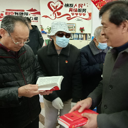 上门送学传温情,学习覆盖无死角。针对部分年老体弱、行动不便的党员参与集中学习难的问题,社区党委组建 “党员送学小分队”,开展 “上门送学、入户宣讲” 活动。小分队成员带着三本学习资料,逐一走访行动不便党员家庭,亲手将书籍送到党员手中,并结合党员身体状况和认知特点,用通俗易懂的语言解读全会精神、党章要点及纪律要求,现场解答党员疑问。