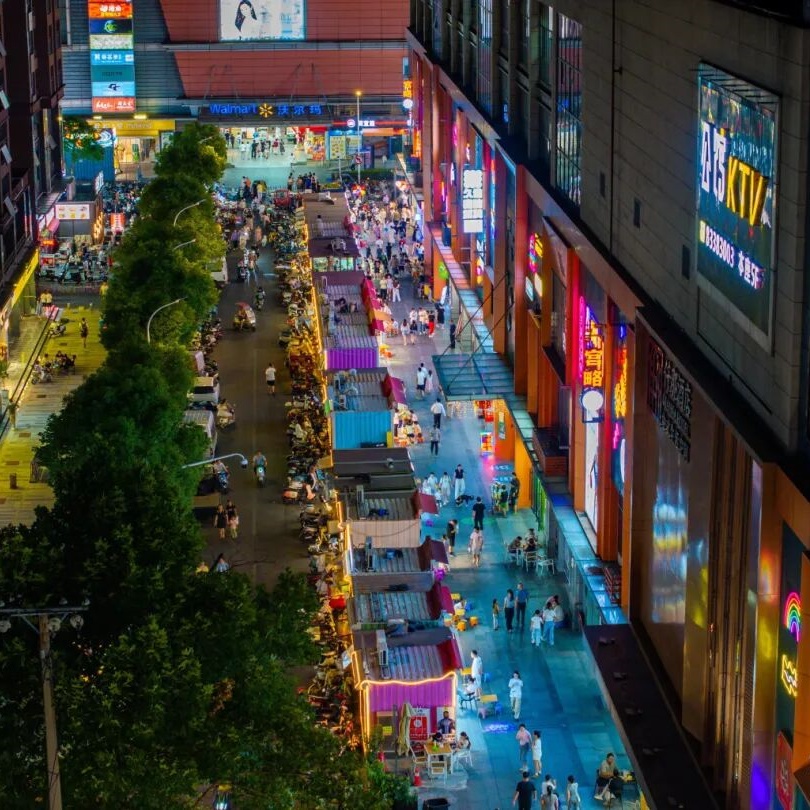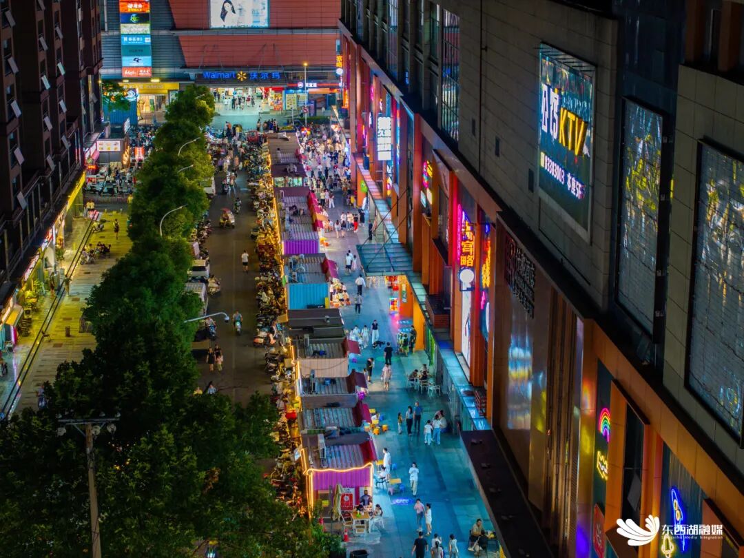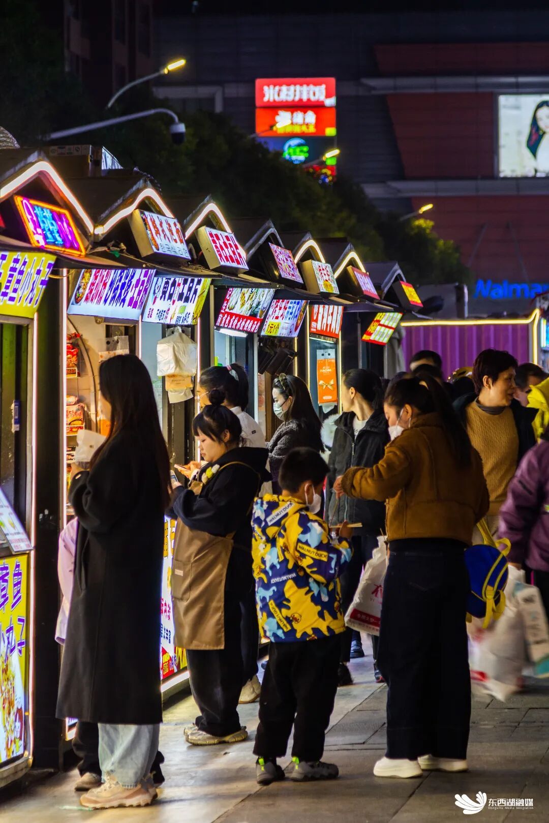 夜幕降临,华灯初上。走进吴家山仟那广场夜市,映入眼帘的是一派繁荣有序的景象:48个集装箱商亭整齐排列,灯光璀璨;烤串摊位前滋滋作响,冰粉摊上传来清脆的吆喝声,空气中弥漫着诱人的香气。这里,不再是杂乱无章的路边摊,而是街坊邻里放松聊天、感受城市温度的“深夜食堂”。日均7000人次的客流量,让这里成为了东西湖名副其实的“网红打卡地”。