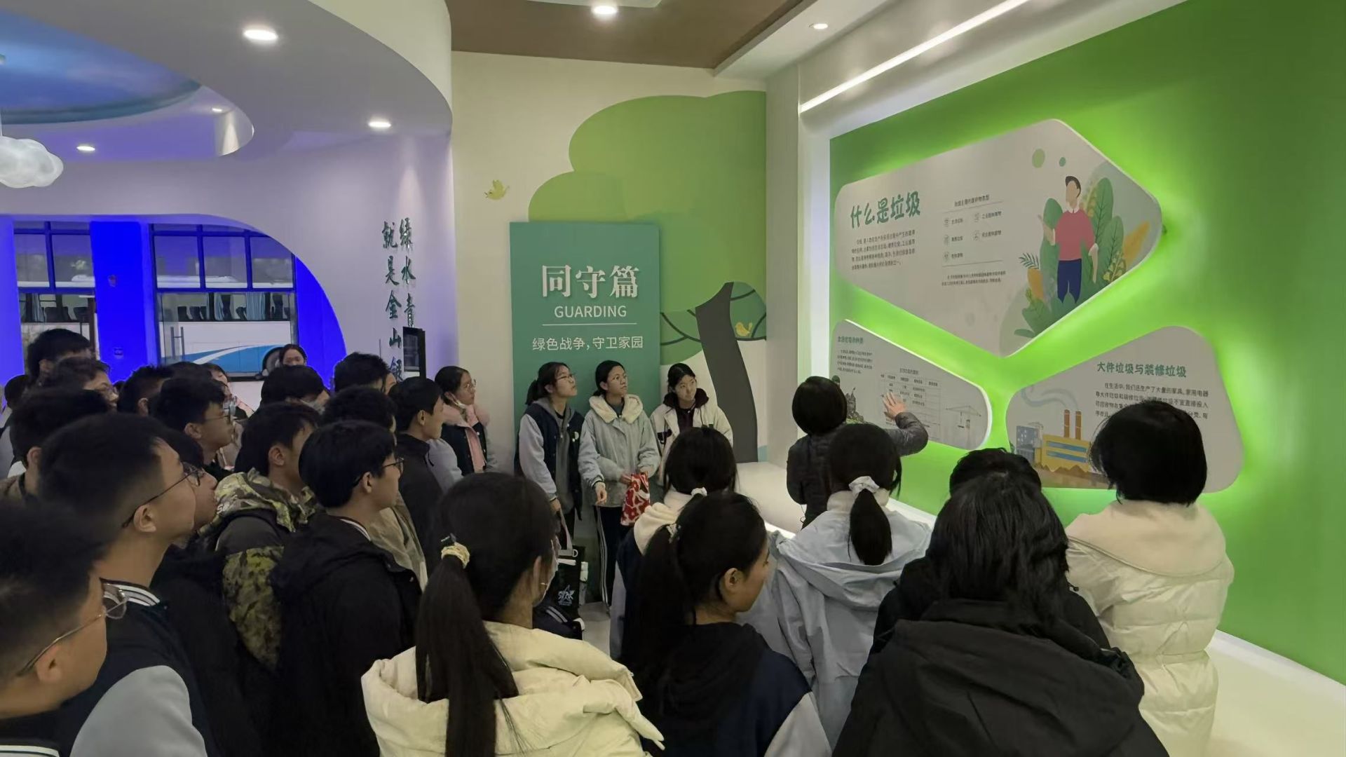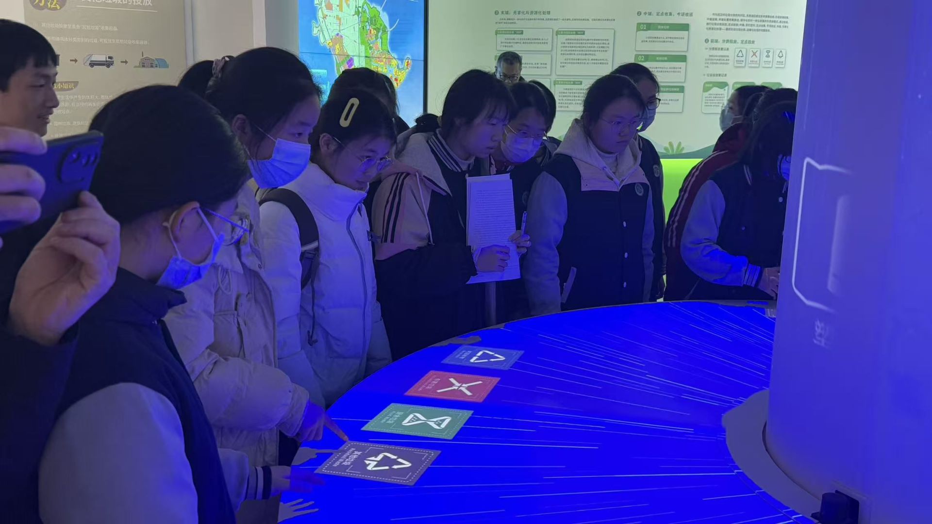 在东西湖区垃圾分类宣教馆,这里的垃圾分类知识直观又有趣。刚一进馆,高清语音介绍幕、收运路线互动屏、智能分类投放柱等现代化互动设施,就牢牢吸引了大家的注意力。同学们迅速分成小组,围在互动设备前踊跃尝试:有的对着投放柱反复练习分类投放,直到屏幕显示“投放正确”才露出笑容;有的在收运路线互动屏上点击操作,直观了解不同垃圾的收运去向。在轻松有趣的互动氛围中,同学们不仅精准掌握了垃圾分类的标准,更认识了我区垃圾“分类投放—专业收运—集中处理”的闭环体系。