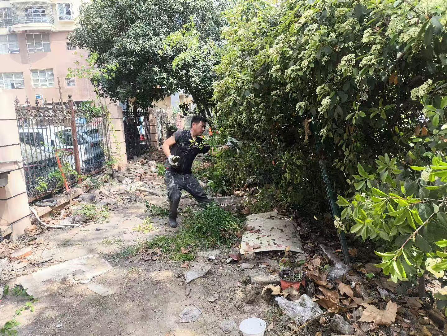 改造前,该区域杂草疯长、各类杂物随意堆放,建筑垃圾与生活垃圾混杂,不仅严重影响社区周边环境美观,还形成了行人通行的安全隐患。社区党委在走访中了解到居民对此的整治诉求后,多次牵头与城管局、服投公司沟通协商,反复实地勘查现场、敲定改造方案。