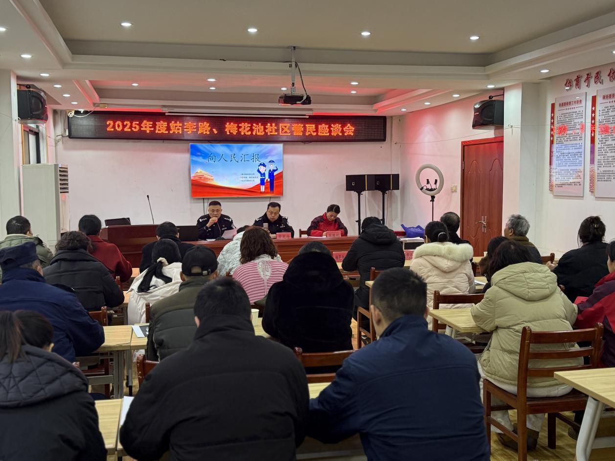 “各位街坊邻居、企业同事,又是一年将尽,今天既是向大家汇报工作,也是请大家来批阅试卷。”恳谈会一开始,街派出所姑李路、梅花池社区负责民警唐警官用这样一番亲切的开场,将大家的思绪带入这一年的点点滴滴。他围绕“打、防、管、控、服”五大职责,用一组组扎实的数据和鲜活的案例,呈现了一份“沉甸甸”的平安答卷: