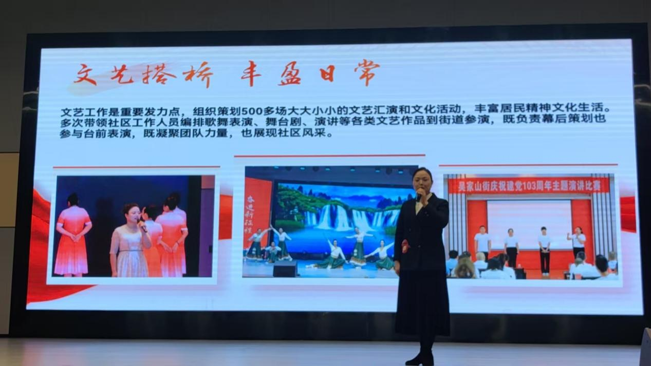 祁婷以《以文聚力,向下扎根,向上生长》为题,结合十年社区工作经历,生动讲述了如何将文艺特长转化为社区治理的“软实力”。她通过撰写千余篇简报、挖掘推广社区典型、策划数百场文化活动,成功搭建居民与社区、商圈之间的信任桥梁,更以新媒体手段扩大社区影响力。其演讲情感真挚、案例鲜活,充分体现了一名社区工作者对岗位的坚守与创新,赢得评委一致认可。