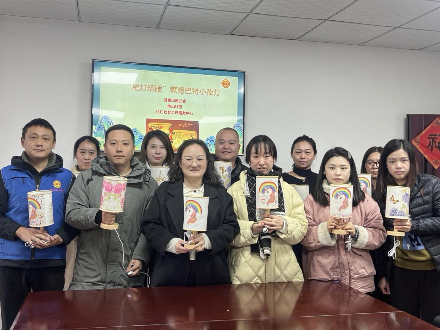 12月23日上午,南山社区会议室暖意融融,社区工会组织全体职工开展了一场别开生面的蝶古巴特台灯DIY活动,以创意手作编织冬日暖意,传递工会温情。