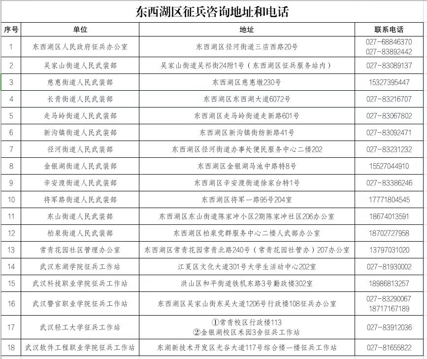 2026年12月31日前年满18周岁(2008年1月1日 至12月31日之间出生),户籍在东西湖区的男性公民。大学文化程度24周岁前,高中文化程度22周岁前,初中文化程度20周岁前的适龄男性公民未登记的要进行补登。