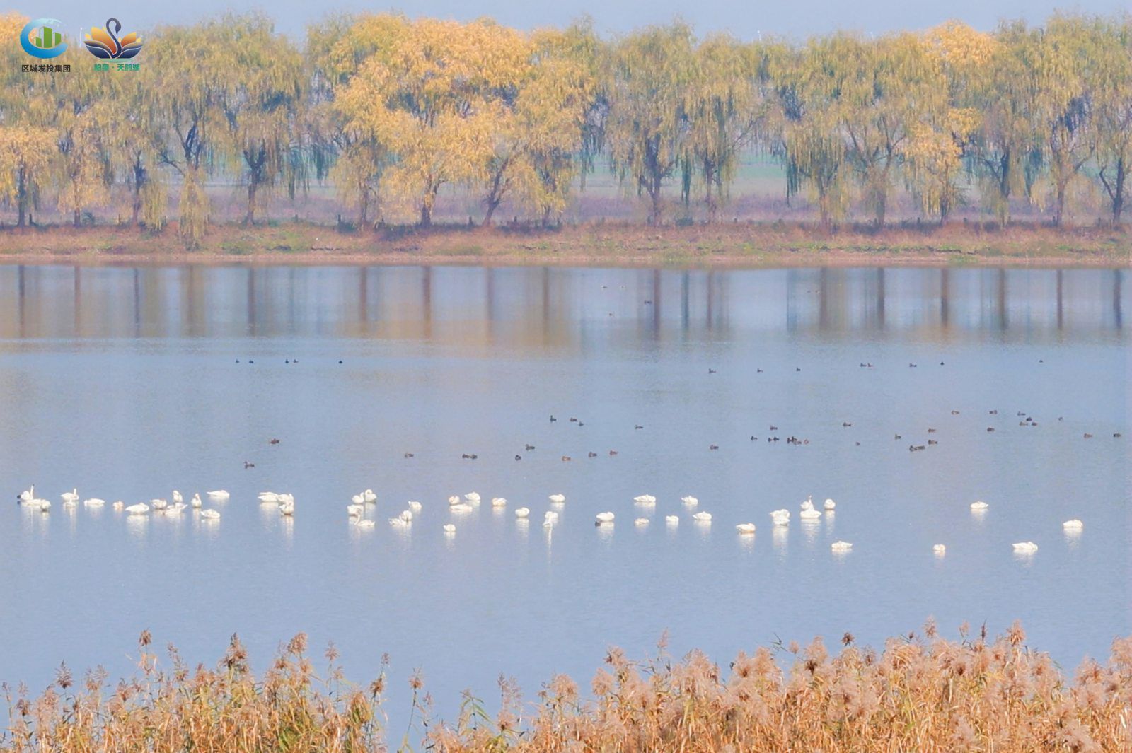 据悉,2006年,当时观鸟人在这里发现了大量天鹅,天鹅湖因此得名。每逢岁末初冬时节,这里候鸟纷飞,国家一级保护动物白鹤、东方白鹳等珍稀鸟类都曾在此惊艳现身。