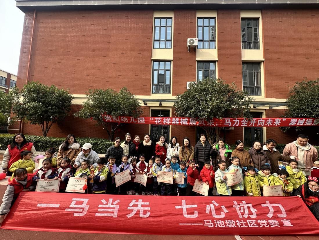 12月31日上午,将军路街马池墩社区联合奥林匹克尚阳幼儿园举办“花样器械展风采·马力全开向未来”器械操比赛。亲子家庭及周边居民齐聚操场,在摇铃、旗操、篮球操的律动里,迎接早晨的第一缕“成长阳光”。
