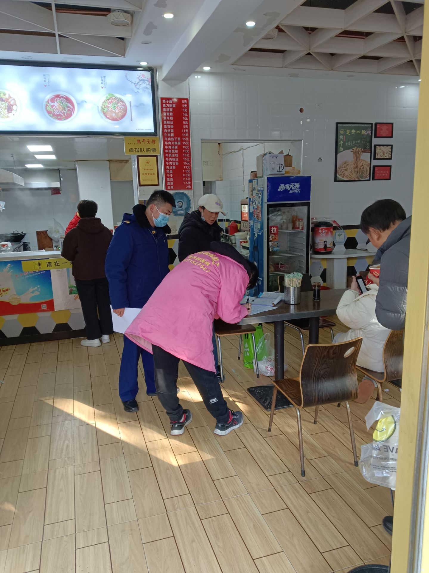 专项行动启动后,联合工作组带领社区工作人员、警务室民警深入辖区餐饮门店,开展“拉网式”安全排查。检查组重点核查燃气使用安全,仔细查看燃气钢瓶存放是否规范、减压阀是否完好、燃气报警器是否灵敏有效;同时检查消防设施配置、疏散通道畅通情况及食品安全台账,对部分门店存在的燃气软管老化、消防器材过期、后厨油污堆积等隐患,现场下达整改告知书,明确整改要求与时限,督促商户立行立改,签订安全责任承诺书,确保隐患闭环管理。