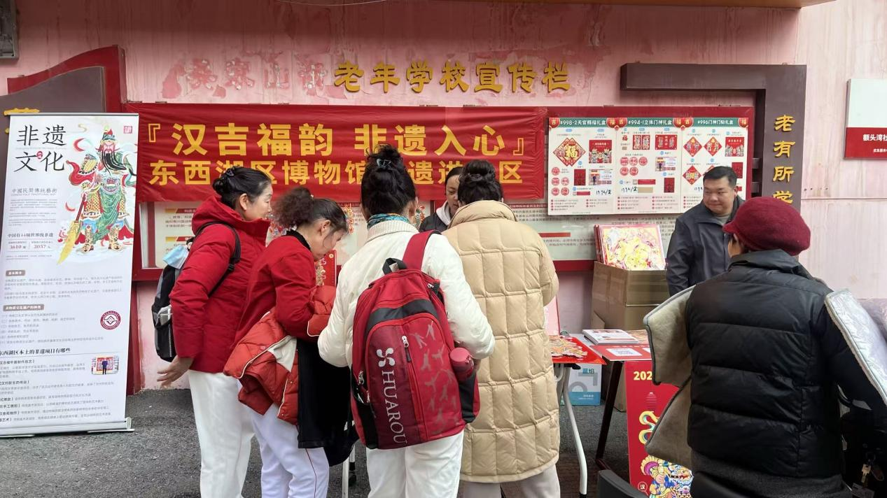 近日,额头湾社区的老年学校楼下飘起了浓浓的 “年味儿”—— 由社区联合东西湖区博物馆、汉吉福品牌共同举办的 “汉吉福韵 非遗入心”非遗年画展,把传统非遗文化直接送到了居民家门口,暖红了整个辖区的冬日。